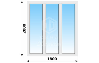 Трехстворчатое пластиковое окно 1800x2000 Г-Г-Г